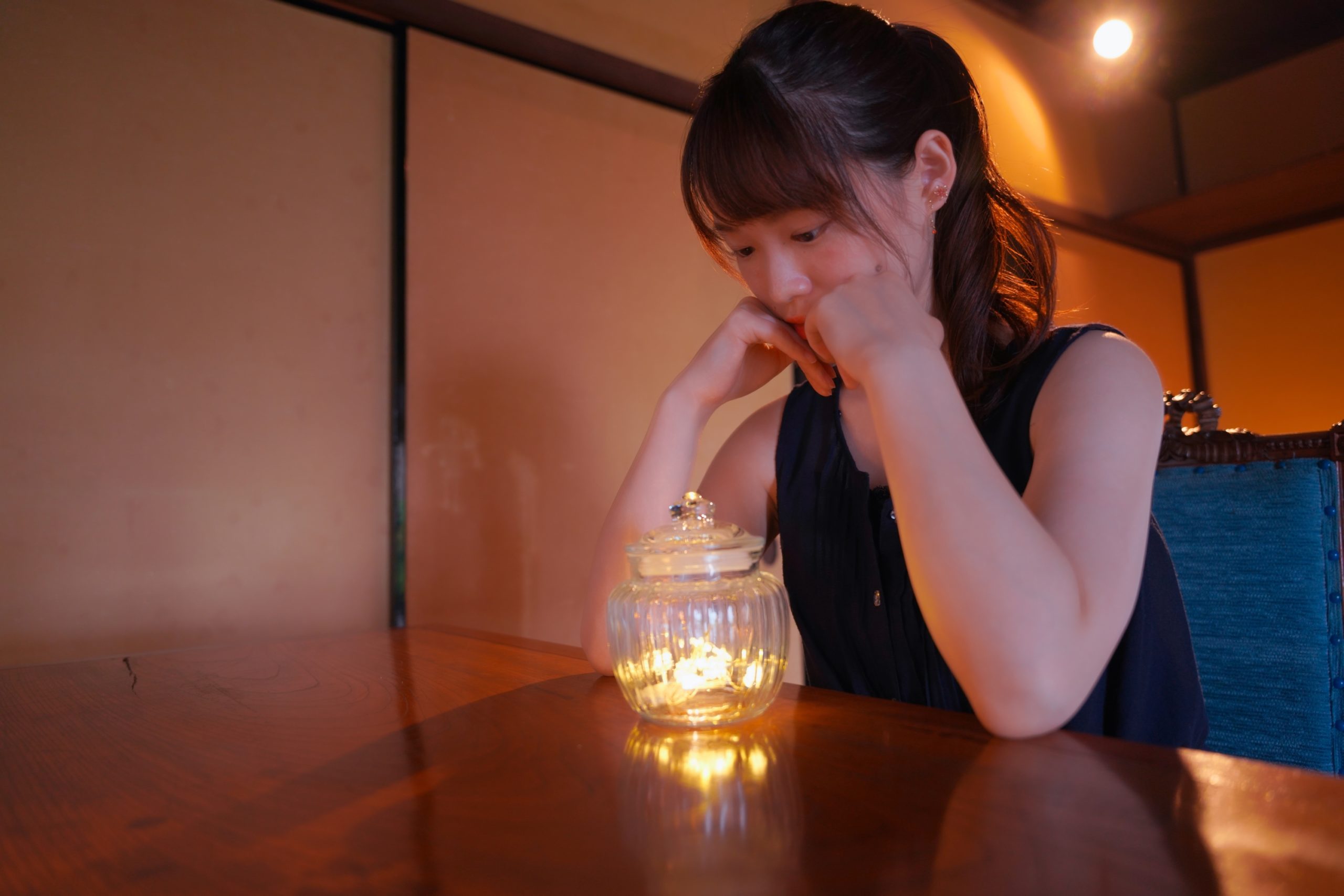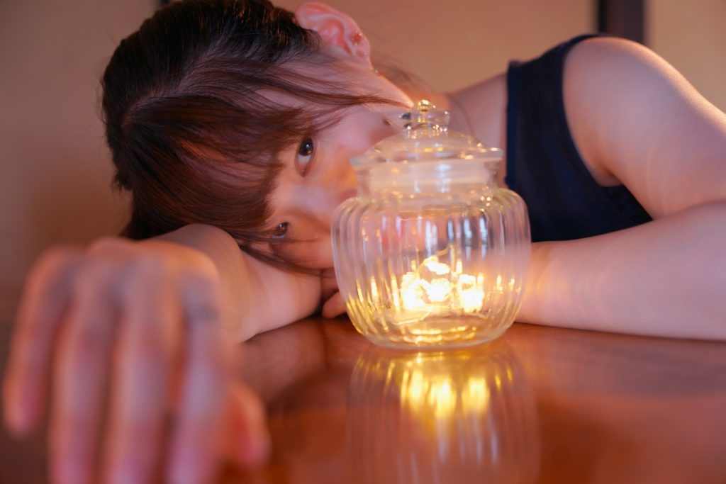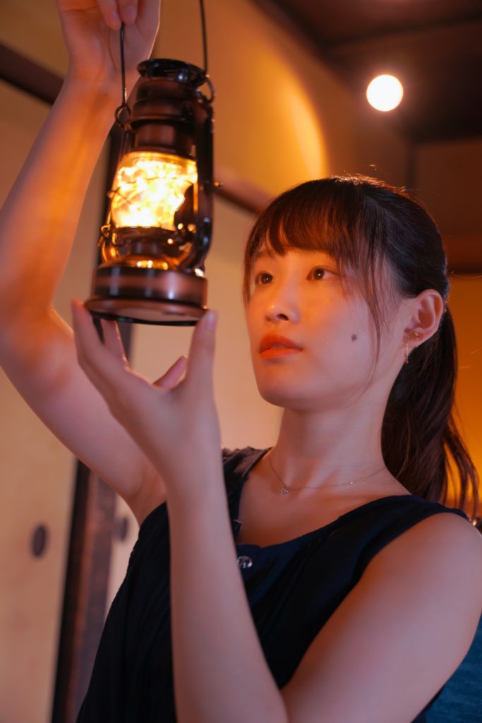 室内では、ストロボを使って光遊びをしたりして